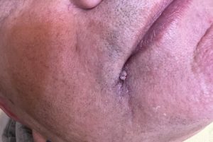 In fact the below picture was his follow up 6 weeks after the second treatment and you can see what a fantastic result we have got. However you can also see here that he had begun to develop one in the corner of his mouth. This is very normal as once one wart appears then you are susceptible to get others.  We treated this as we did the other and one treatment was enough for that one to also be banished.